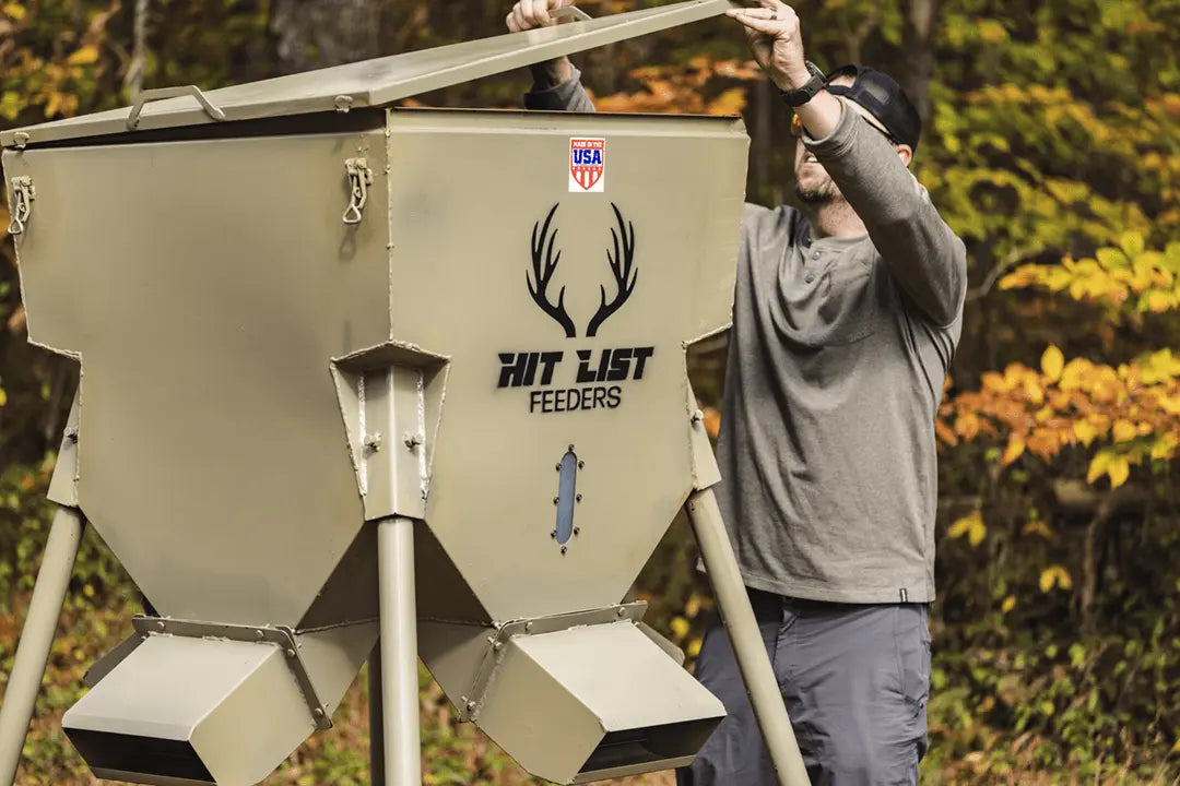 Featuring a stand-and-fill design, this feeder is tailored for your ease and comfort. With the capacity to hold up to 650 pounds of corn feed and an additional 500 pounds of mineral feed, the Hit List Feeder 650 minimizes the need for frequent refills, allowing you to focus on what matters most - enjoying your time in the wild.